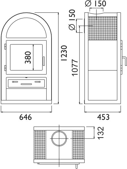- Диаметр дымохода, (мм) 150
