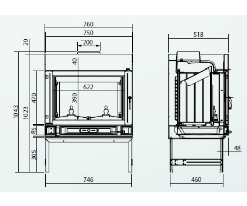 Система «чистое стекло» - технология, которая позволяет стеклу камина долгое время оставаться чистым и не коптиться. Также топка оснащена регулировкой подачи воздуха на горение и шиберной заслонкой с автоматическим открыванием(при открывании дверцы, шиберная заслонка открывается автоматически, данное преимущество позволяет максимально ограничить проникновение дымовых газов в комнату).