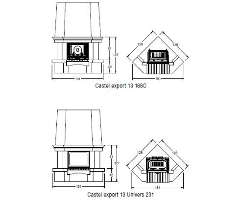 Цена указана за камин в стандартном исполнении (см. чертеж) из указанных материалов без топки.