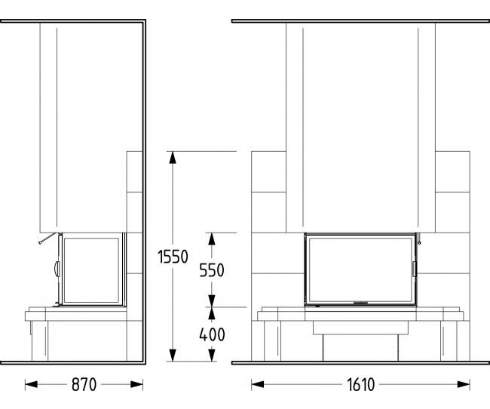 Цена указана за камин в стандартном исполнении (см. чертеж) из указанных материалов без топки.