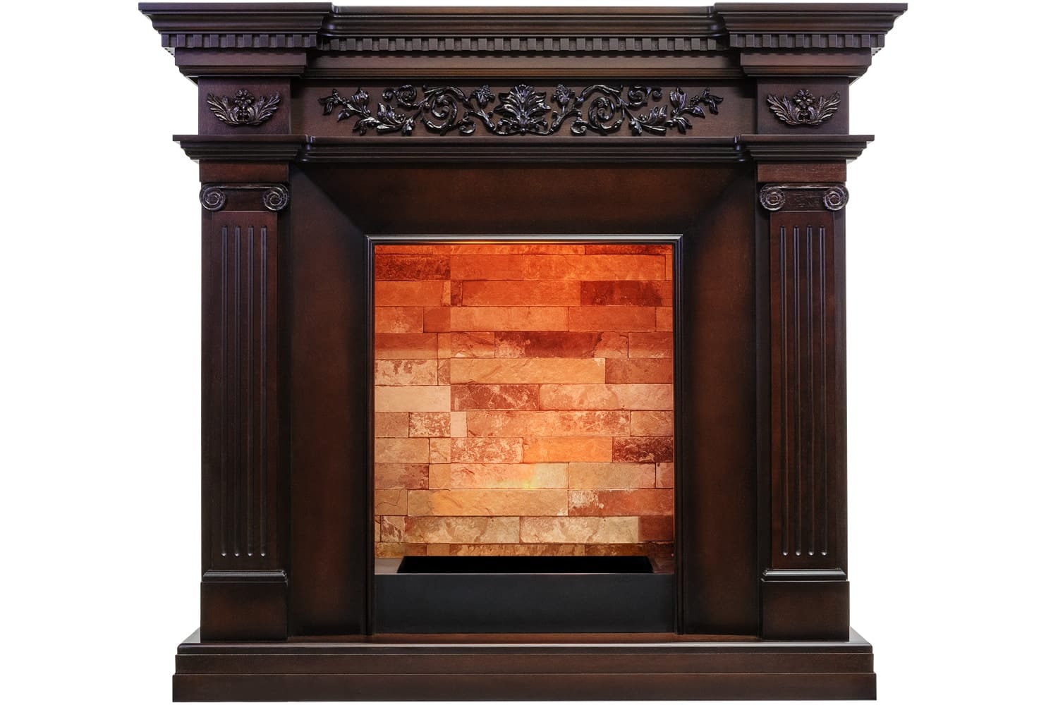 Каминокомплект Dimplex Amalfi выполнен в античном стиле. Изящный лепниной барельеф украшает фронтон и кронштейны античных колонн, расположенных по бокам портала. Цветочный орнамент придает легкую утонченность строгим линиям обрамления очага, а высокий подиум визуально вытягивает портал и завершает элегантный силуэт камина. Портал отлично подойдет как для размещения в городской квартире, так и в загородном доме.