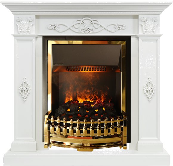 Электрический очаг Dimplex Atherton серии Opti-Myst с эффектом реального пламени. Этот стильный классический очаг в обрамлении золотого цвета предназначен для встраивания в порталы, выполненные в классическом стиле.