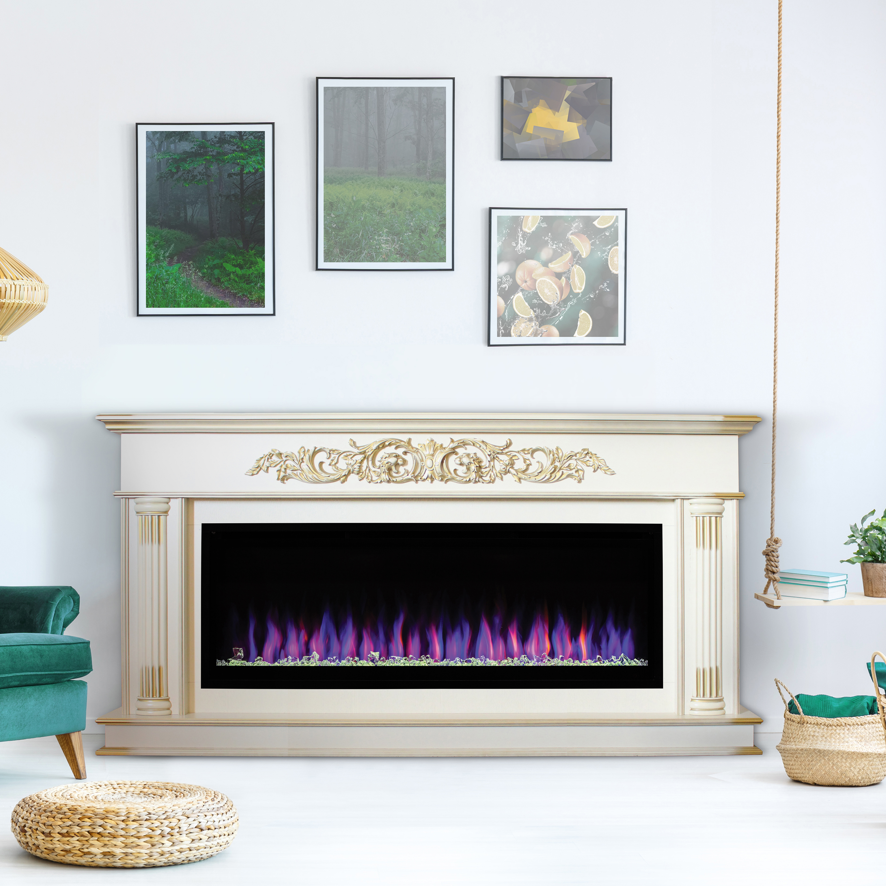 В комплект с линейным порталом Prince входит широкий электрический камин Saphir 50. Такой очаг с мощностью 1.5 кВт будет отлично служить дополнительным источником тепла для небольших помещений. Очаг имеет встроенную функцию регулировки яркости пламени и пульт дистанционного управления. Дополнительный уют придаст приятное потрескивание дров, которое создается благодаря встроенной функции звукового сопровождения.