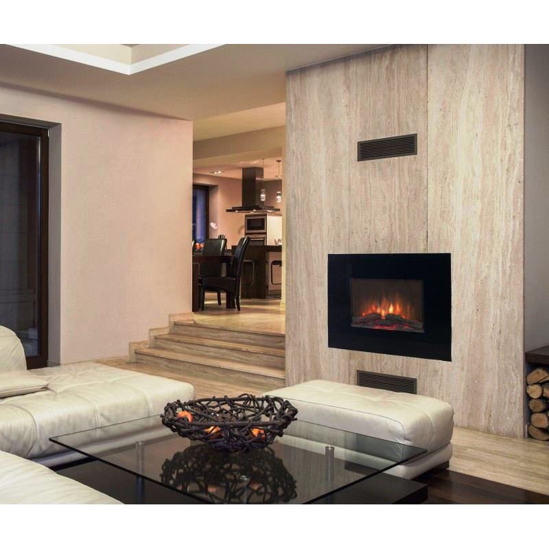 - Мощное обрамление черного цвета, созданное дизайнерами фирмы, и достаточно реалистичный муляж дров с подсветкой горящего пламени, придают помещению ореол таинственности и немного сказочности.