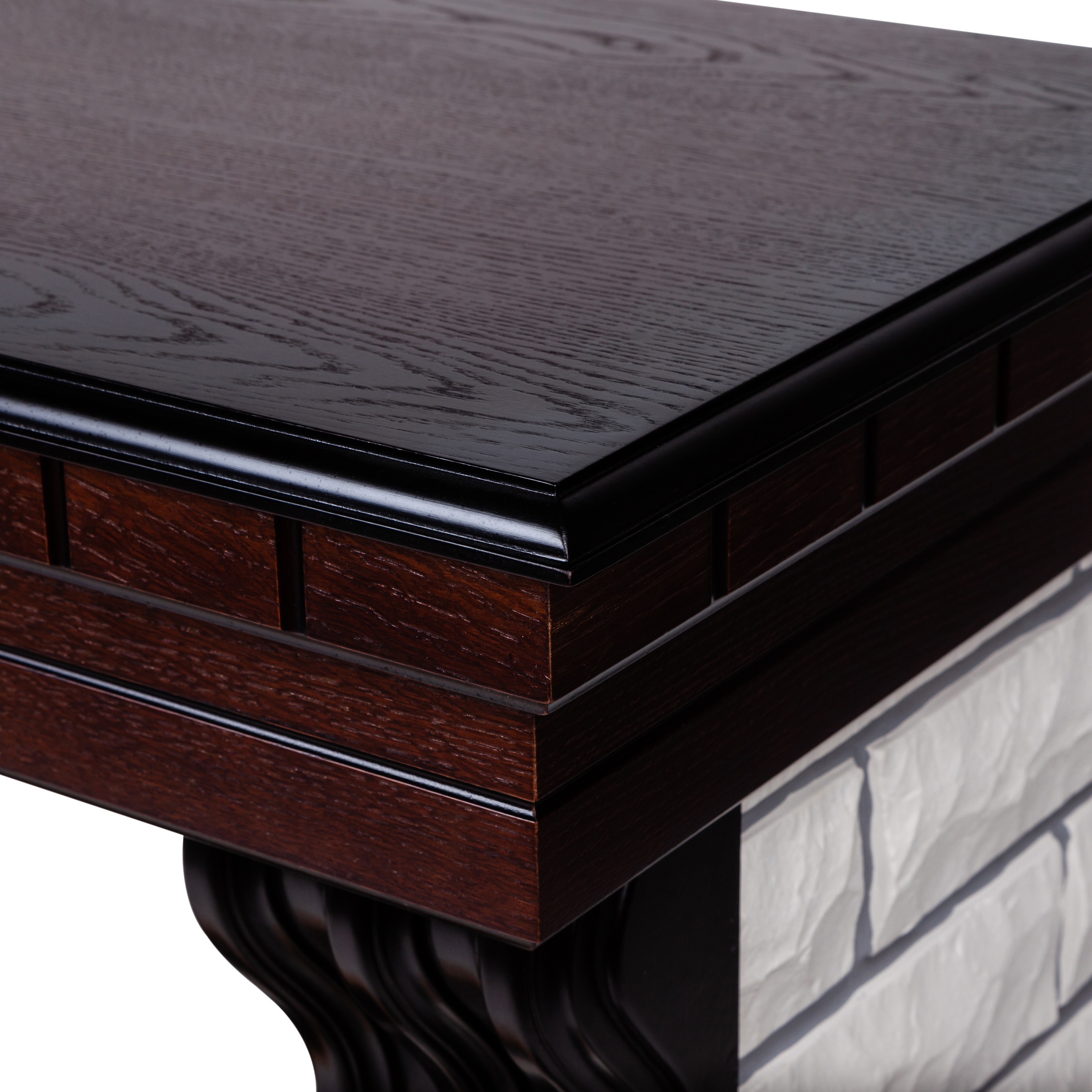 - Изготовлен из искусственного белого камня и шпонированного МДФ цвета античный дуб.