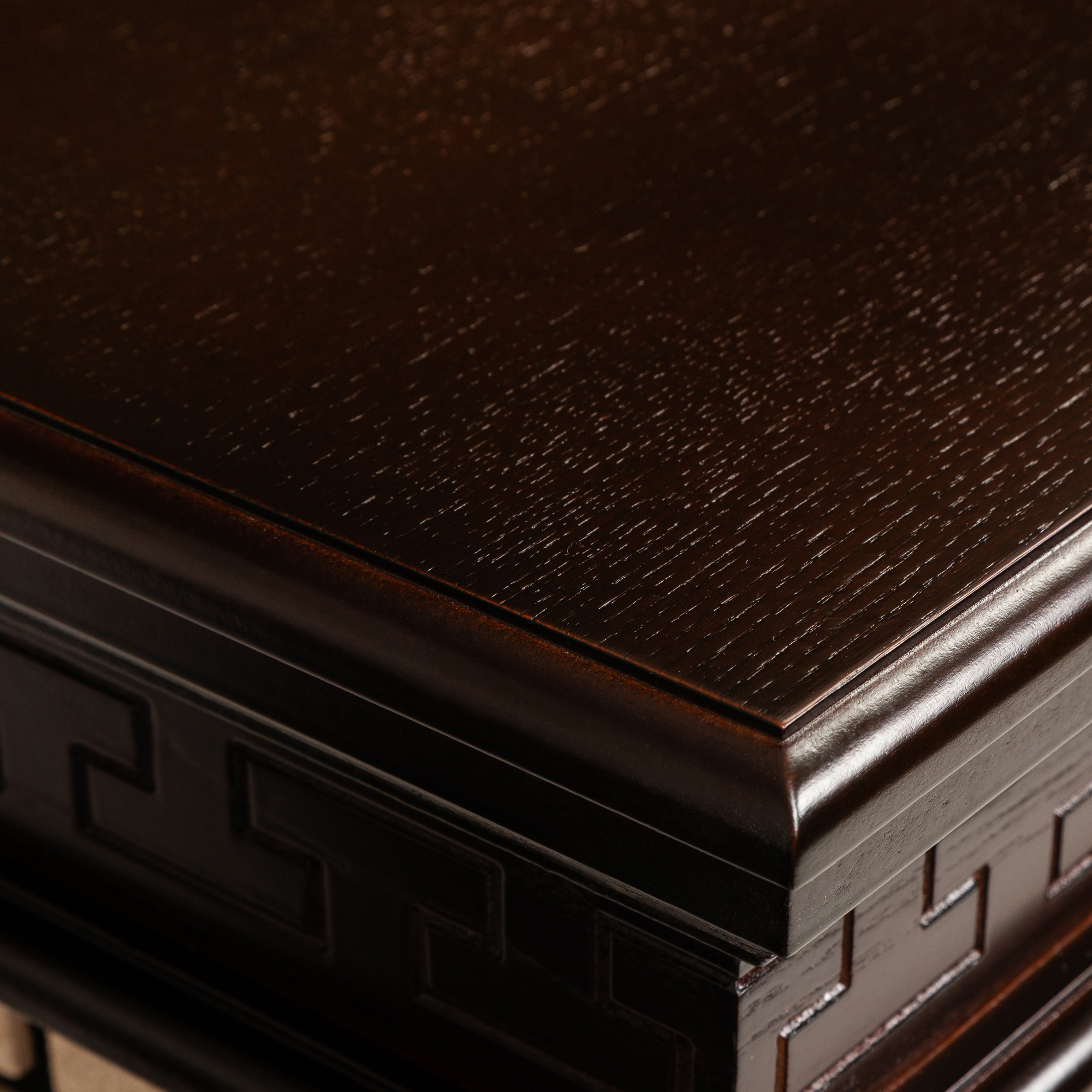 - Разработан из качественного шпонированного МДФ цвета античный дуб с отделкой белым искусственным камнем.
