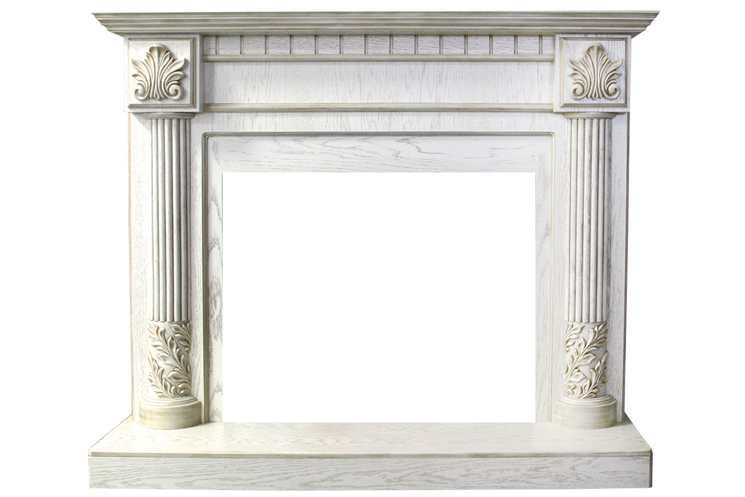 Каминный портал Rodos выполнен в античном стиле. Изысканные колонны, обрамляющие зону очага, имеют резной узор. Венчают колонны капители квадратной формы, декорированные объемным узором. Необычный дизайн и благородные цветовое решение делают модель по-настоящему изысканной и роскошной.