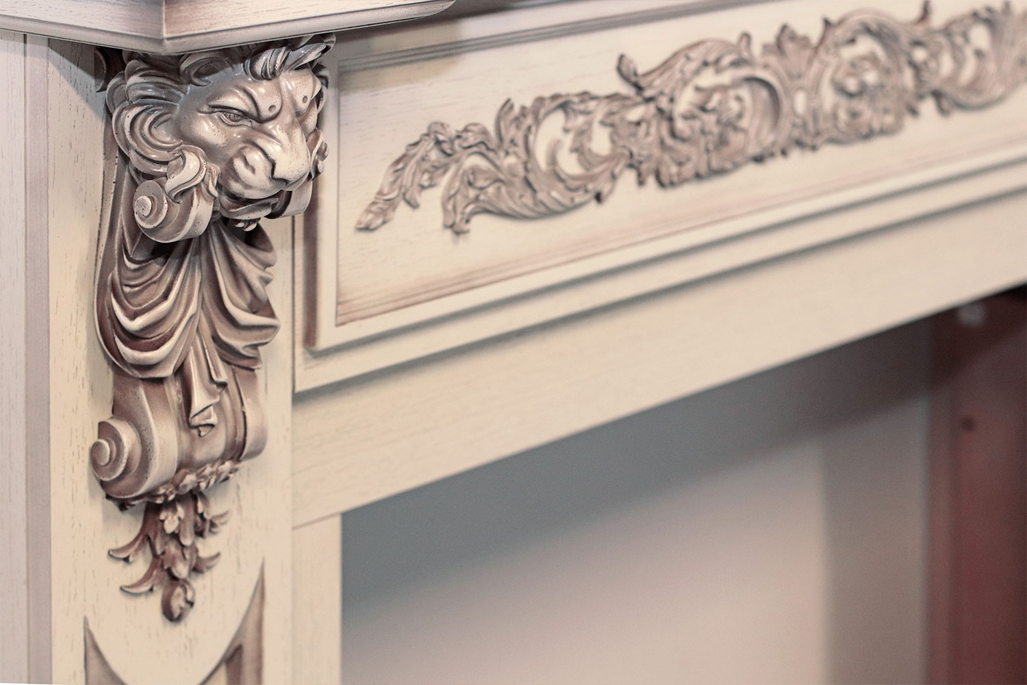 Портал Dimplex Lancaster исполнен в классическом стиле. Украшен в верхней части резным орнаментом и дополнен по бокам псевдоколоннами. Основание портала выполнено в виде высокого постамента, выступающего вперед, что акцентирует внимание на зоне очага с имитацией «живого» огня.