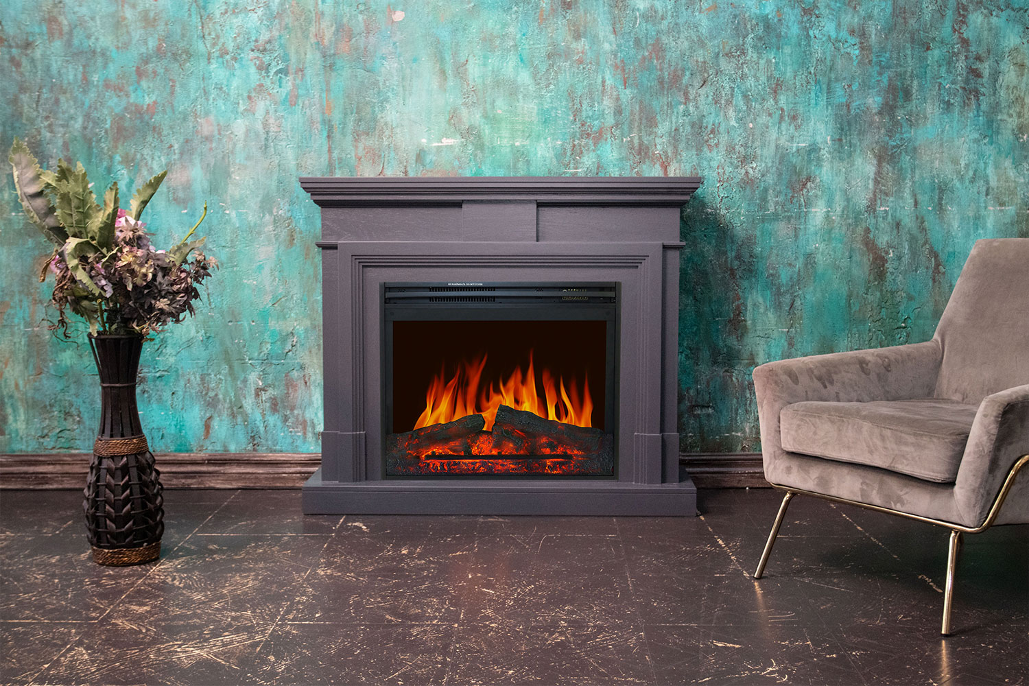 Портал Coventry подходит под электрические камины Royal Flame. В очагах встроена технология имитации реалистичного пламени и звуков потрескивающих дров, а также функция обогрева и регулировки яркости пламени.