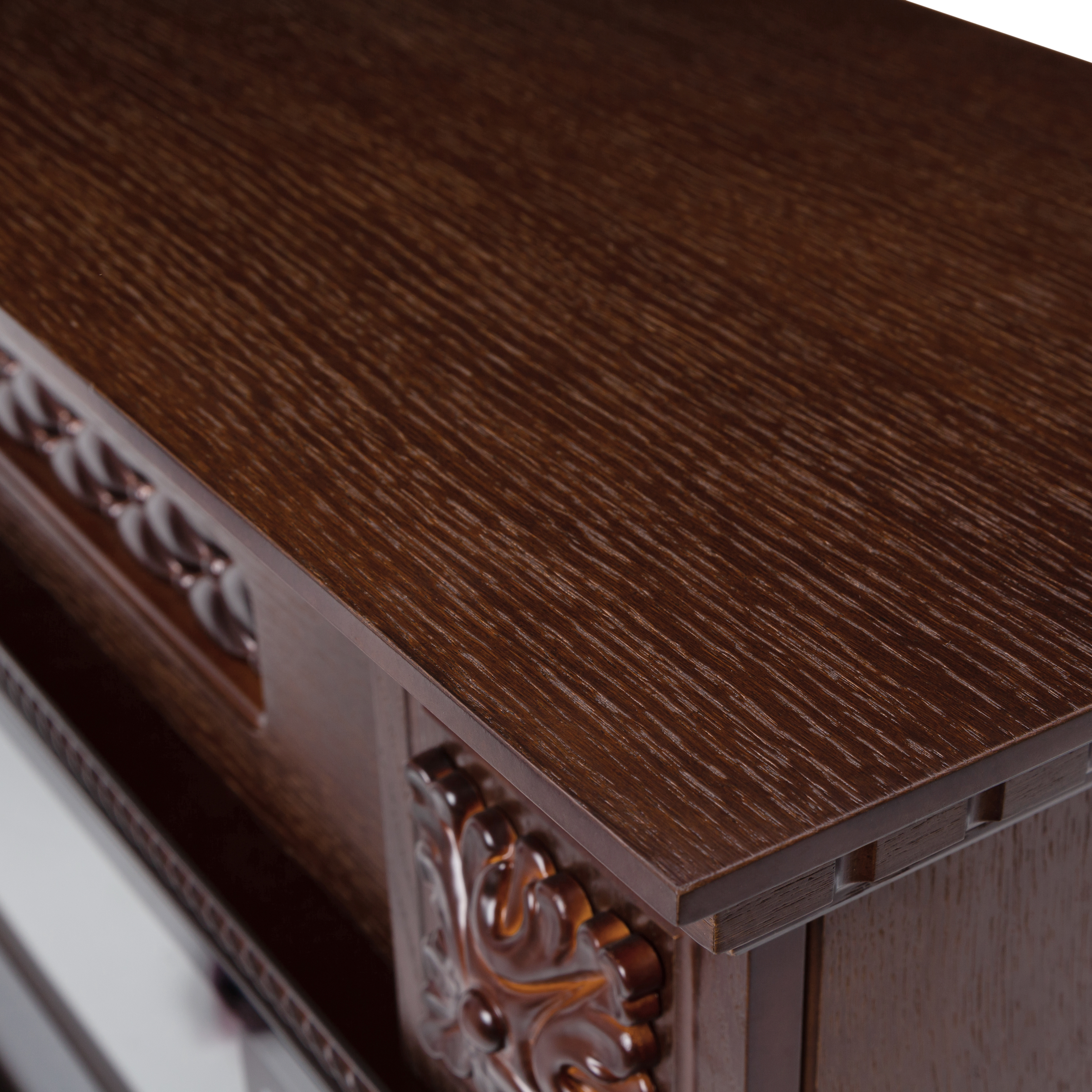 В производстве данной модели портала использовались только качественные, фирменные, надежные и экологически чистые элементы. А именно МДФ и шпон. Использование данных материалов позволяет значительно снизить стоимость портала и сделать его покупку доступной для любого желающего. Дополнительный плюс - вес камина. Портал имеет небольшой вес, поэтому его перевозка даже на легковой машине не составит огромного труда.