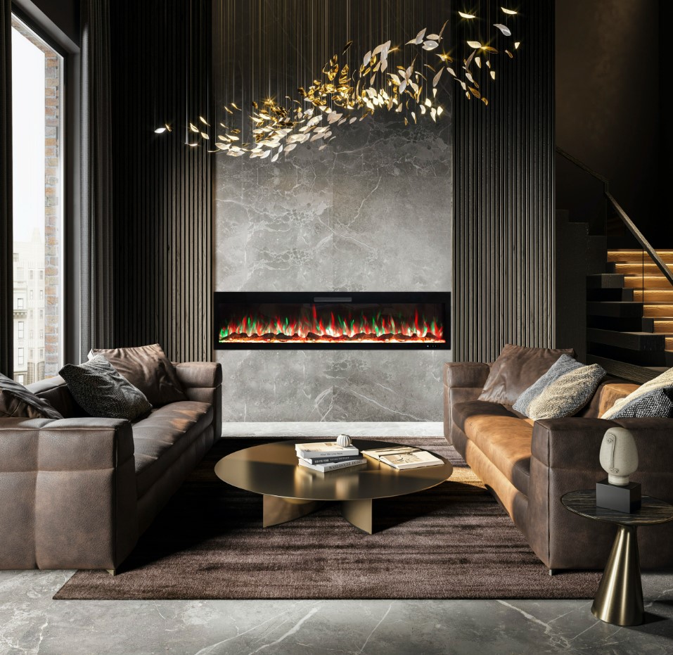 - Минимальная глубина встройки 127 мм, что упрощает встройку очага. Самая тонкая серия для встройки