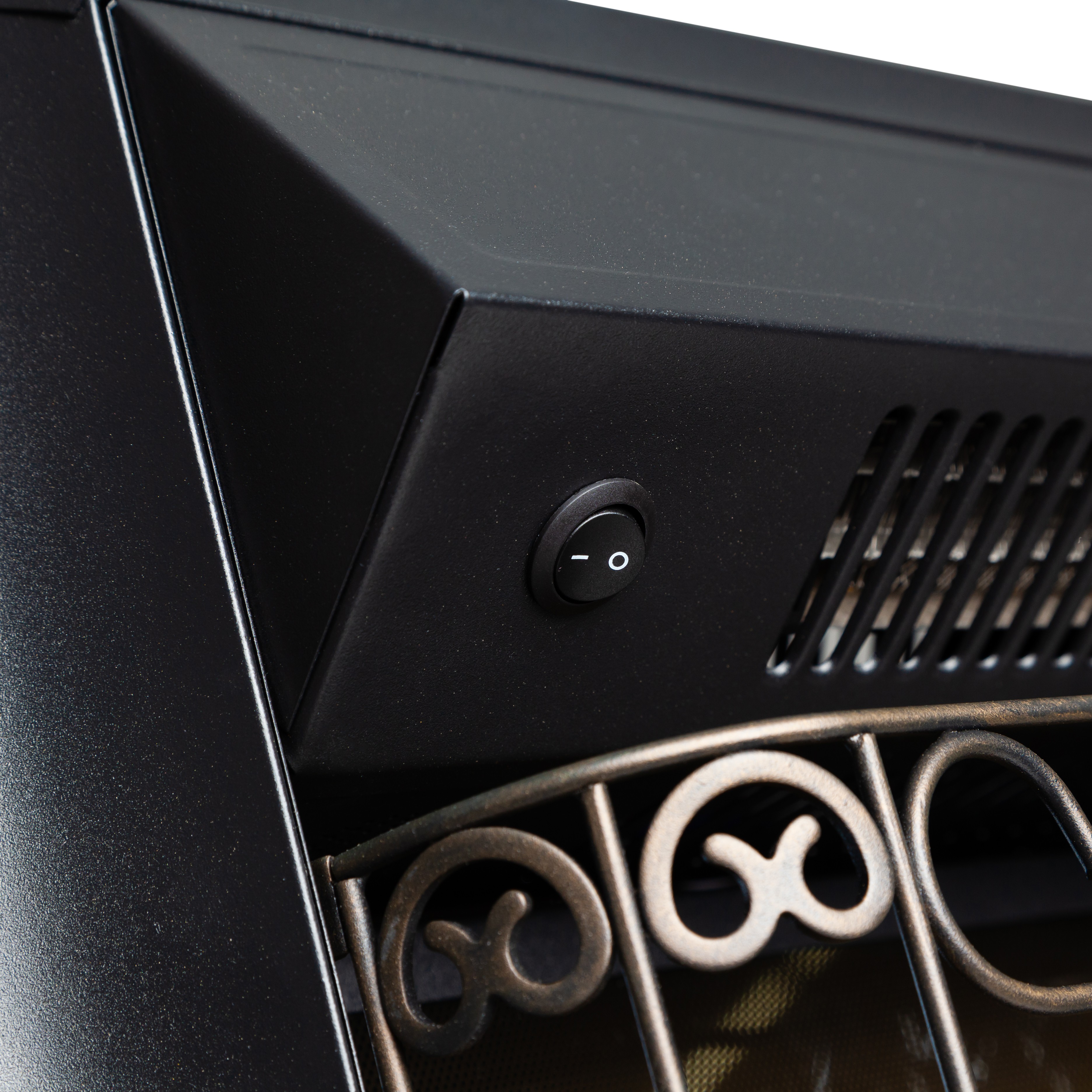 Электрический очаг RealFlame Majestic Lux BL S предназначен для встраивания в стандартные обрамления. Нагреватель с поддувом спрятан в козырьке очага и обеспечивает обогрев в прохладную погоду.