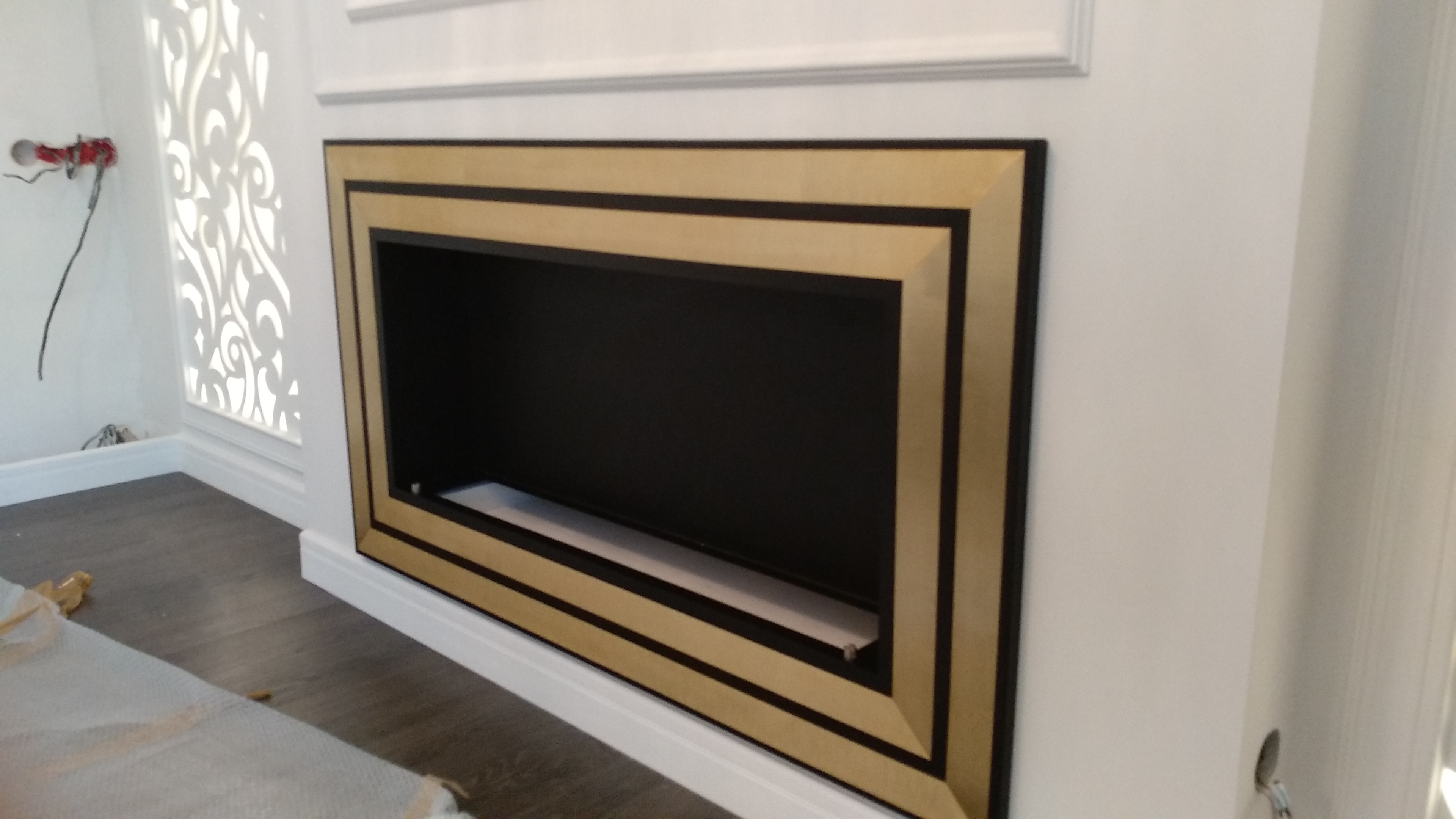 Проект № 105. Встраиваемый биокамин в золотой рамке
