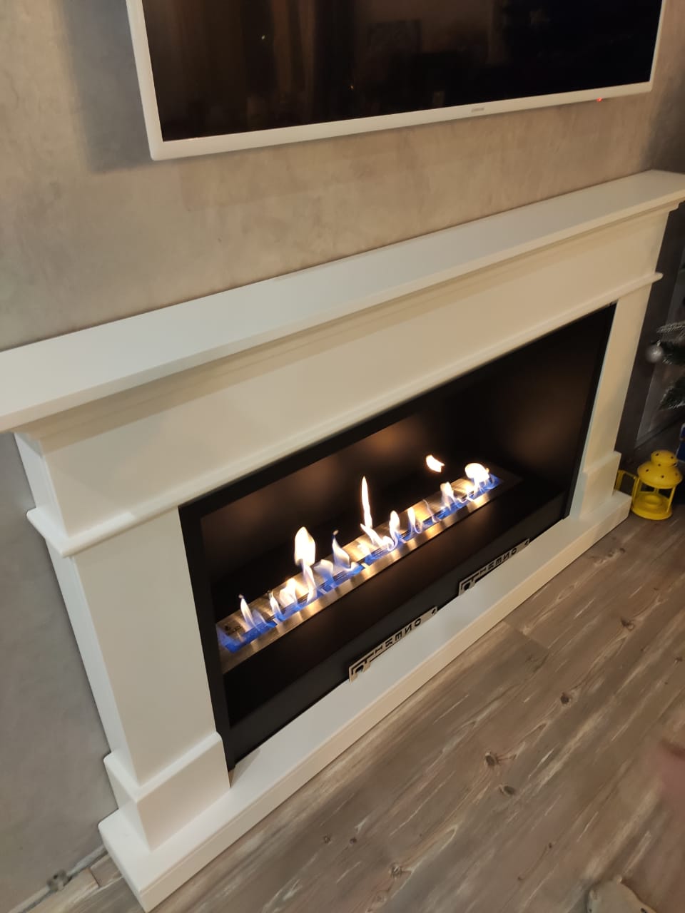 Напольный биокамин, созданный по эксклюзивному заказу, поражает своими габаритами: 1000 x 310 x 650 мм.